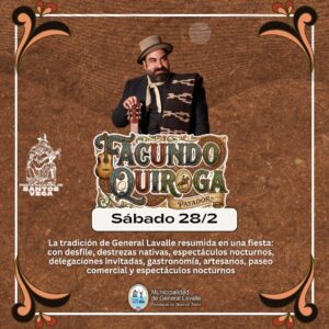 Sábado 28: Facundo Quiroga como payador, Alfredo Silva en humor y La 2001 como cierre musical.