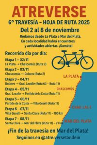 l próximo 4 de noviembre recibiremos a los integrantes de Atreverse, un grupo de ciclistas conformado por personas con visión reducida y sus guías, que realizan una travesía en bicicleta desde La Plata hasta Mar del Plata.
